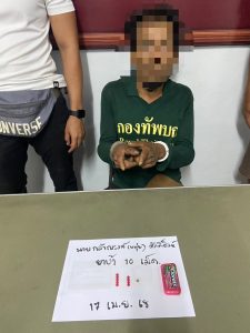 สถานที่จับกุม กระท่อมทิศตะวันออกบ้านโพธิ์น้อย ม.5 ตำบลหนองค้า อำเภอพยุห์ จังหวัดศรีสะเกษ