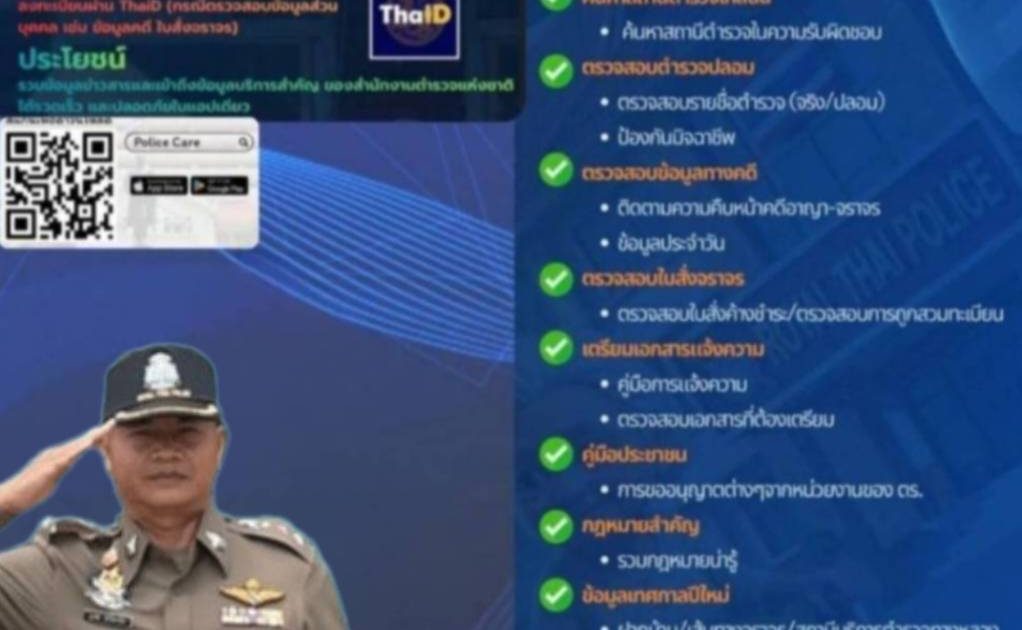 ประชาสัมพันธ์ การใช้แอปพลิเคซัน Police Care (โพลิส แคร์)
