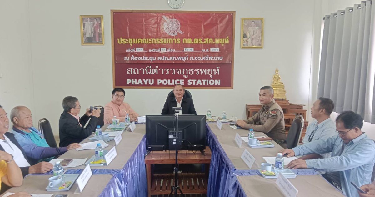 สภ.พยุห์ ภ.จว.ศรีสะเกษ วันนี้ 13 มีนาคม 2568 เวลา 13.30 น. พ.ต.อ.ศุภชัย ปักโคทานัง ผกก.สภ.พยุห์ เป็นประธานชั่วคราว ได้ประชุม กต.ตร.สภ.พยุห์ เพื่อเลือกประธาน ,รอง ประธาน กต.ตร.สภ.พยุห์ ใหม่ แทน ชุดเก่าที่หมดวาระ ผลการเลือก ประธาน รอง ประธาน ฯ ดังนี้