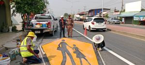 จากการประสานกรารปฏิบัติของ สภ.พยุห์ กับแขวงการทางที่ 2 จาก.ศรีสะเกษ เพื่อลดปัญหาการเกิดอุบัติเหตุในเขตชุมชน วันนี้ (24 มี.ค.68) เวลา 14.30 น.ร.ต.อ.ศักดิ์ชาย เสนคราม รอง สว.จร.ฯ พร้อมด้วยเจ้าหน้าที่สายตรวจจราจร ออกอำนวยความสะดวกการจราจรให้แก่เจ้าหน้าที่แขวงทางหลวงจังหวัดศรีสะเกษที่2 ที่ทำการติดตั้งสัญญาณจราจรทำเครื่องหมายจราจรบนผิวทาง และทางม้าลาย บริเวณหน้าตลาดเทศบาลพยุห์และหน้า รร.อนุบาลพยุห์ ต.พยุห์ อ.พยุห์ จ.ศรีสะเกษ ตามมาตรการป้องกันและลดอุบัติเหตุทางถนน
