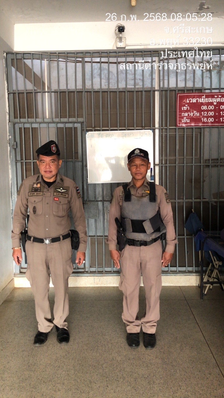 สภ.พยุห์ ภ.จว.ศรีสะเกษ วันนี้(๒๐ก.พ.๖๘) เวลา ๐๘.๐๐น พ.ต.ท.ศรายุทธ สุยะลา สวป.ฯสภ.พยุห์ พร้อมด้วยร.ต.