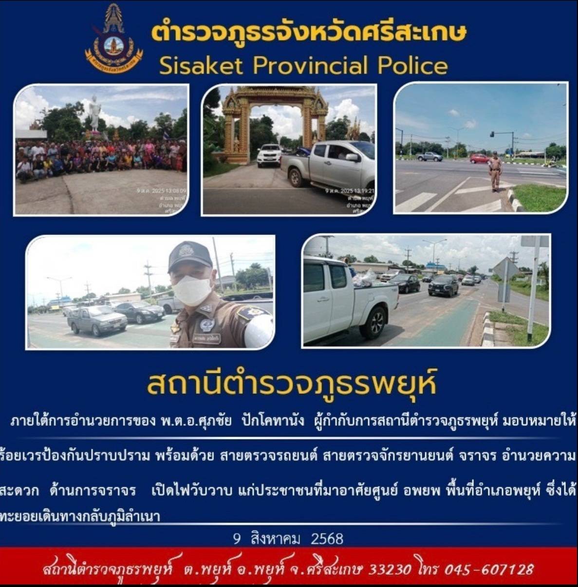 วันนี้ 15 ส.ค.68 เวลา 09.00 น. พ.ต.อ.ศุภชัย ปักโคทานังผกก.สภ.พยุห์ พ.ต.ท.ศรายุทธ สุยะลา สวป.ฯ พร้อมด