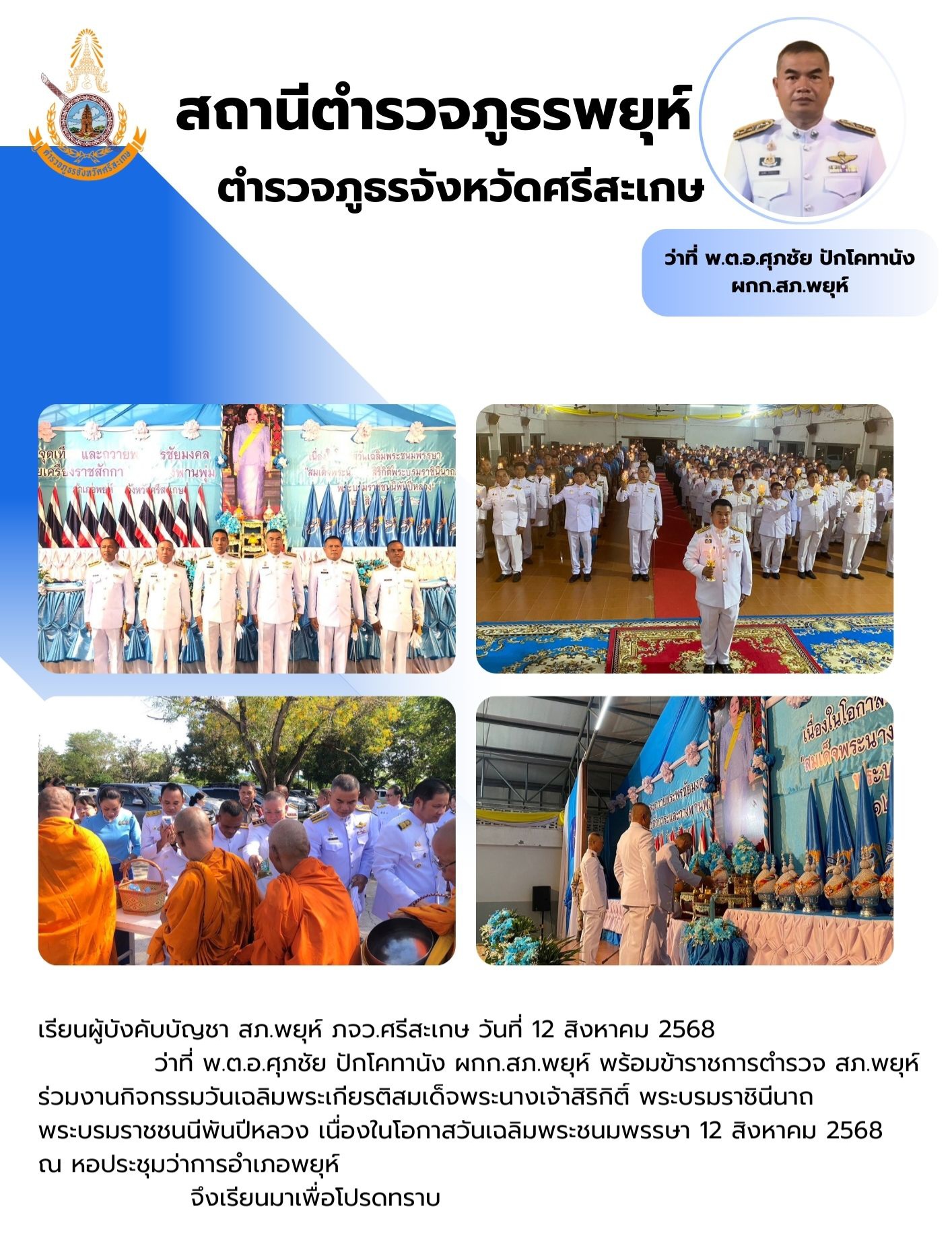 สถานีตำรวจภูธรพยุห์ จังหวัดศรีสะเกษ เรียน ผู้บังคับบัญชา **************************** วันที่ 1 สิงหา